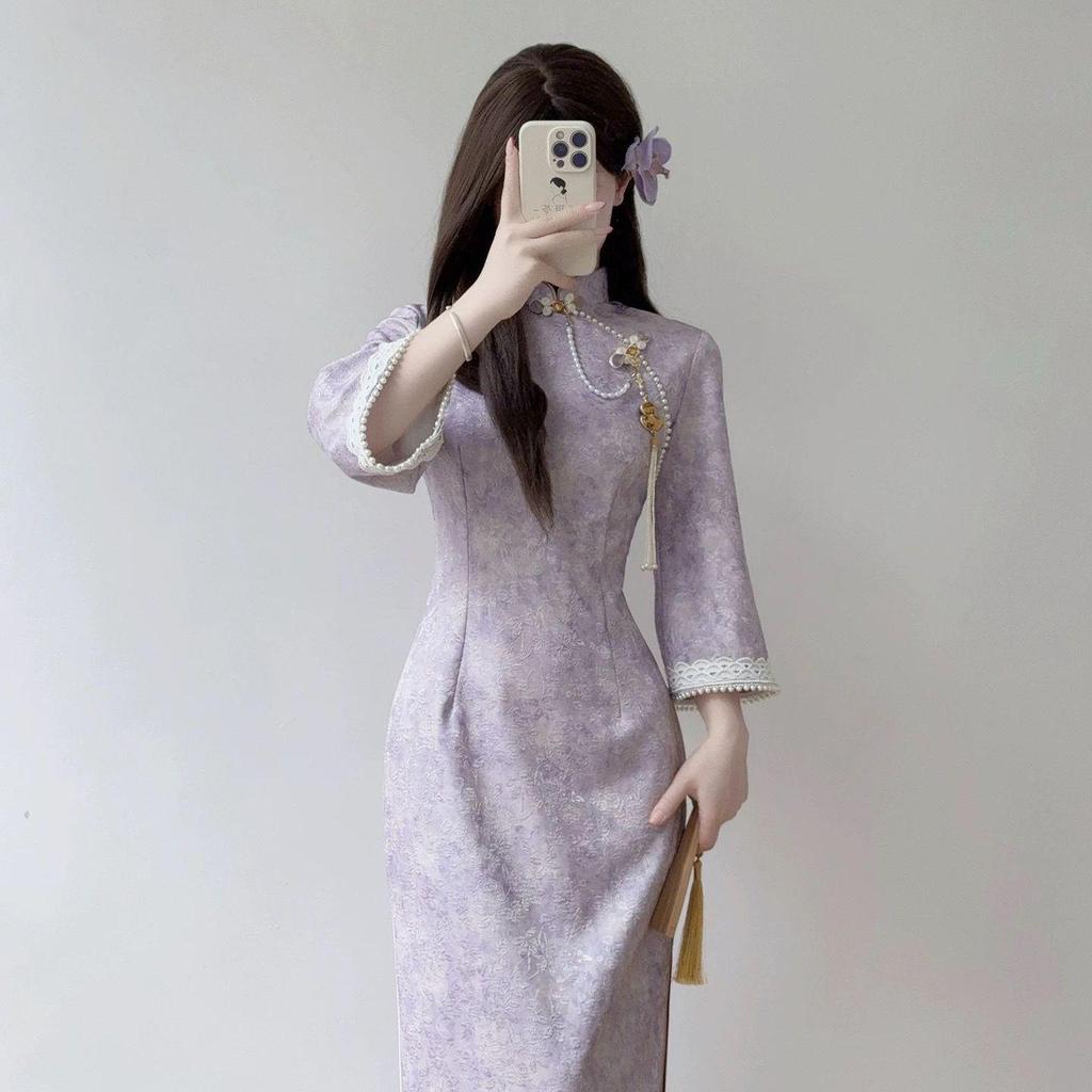 Discover the elegance of the 2025 New Autumn Purple Qipao with Inverted Sleeves, designed to offer a gentle and brightening effect for young women. Crafted with spandex material, this qipao ensures a comfortable fit while showcasing its unique inverted sleeve design. Its deep purple hue captures the essence of autumn, adding a touch of sophistication to any occasion. Ideal for those seeking a blend of tradition and modernity, this qipao effortlessly enhances your seasonal wardrobe with its sleek silhouette and innovative style.