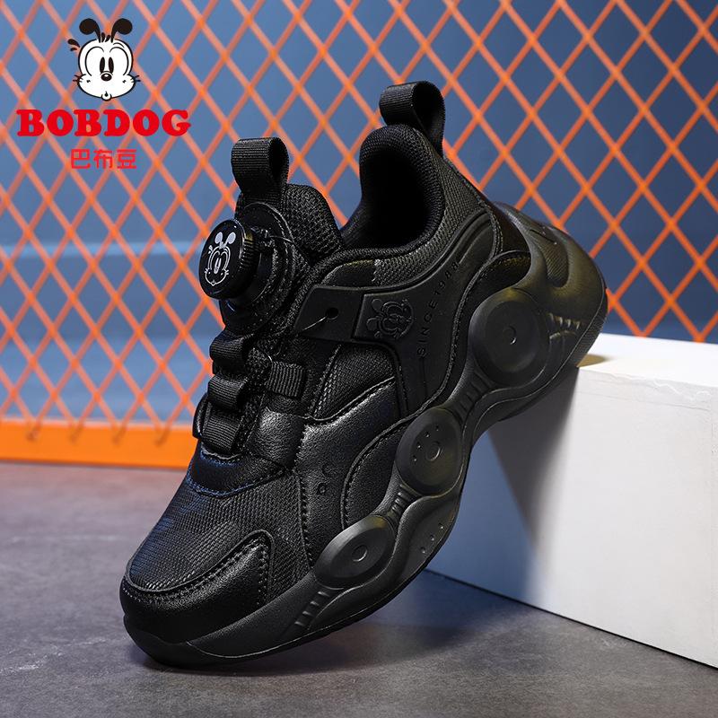 Babu bean boys shoes 2025 autumn new children's black leather waterproof sports shoes middle and older children's school black shoes