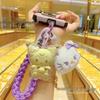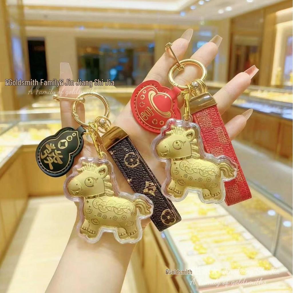 Hästens år 999 Rent Guld Välståndsnyckelring – Gyllene Ponny med Rosa Blomsterberlock för Mobil- eller Väskdekoration
