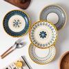 4 pcs ceramic 8-inch discs, Japanese dining table serving plates, relief craft salad pasta plates