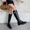 Damskor, knähöga, med fleecefoder, tjock klack, metallspänne och tjock sula, rund tå, från Höst/Vinterkollektionen 2025.