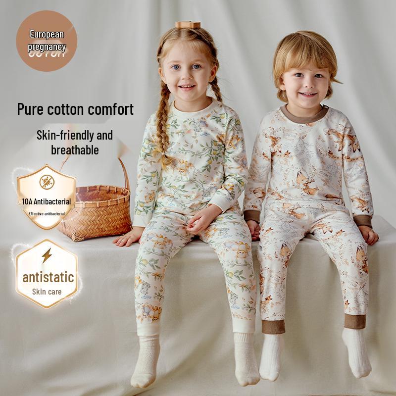 Detta set med höstunderkläder för barn erbjuder både värme och komfort, tillverkat av 100% bomullsmaterial. Designad för både pojkar och flickor, det högkvalitativa tyget säkerställer kvalitet i klass A och ger ett mysigt och andningsbart lager för kallare säsonger.. Perfekt för att hålla barnen bekväma hela dagen, detta set är ett perfekt tillskott till deras höstgarderob.