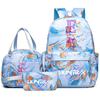 3 st/set Anime Engelsk Bokstav A-Z Tryckt Ryggsäck med Pennfodral Handväska för Tonåring Student Flicka Pojke Bokväska Resväska