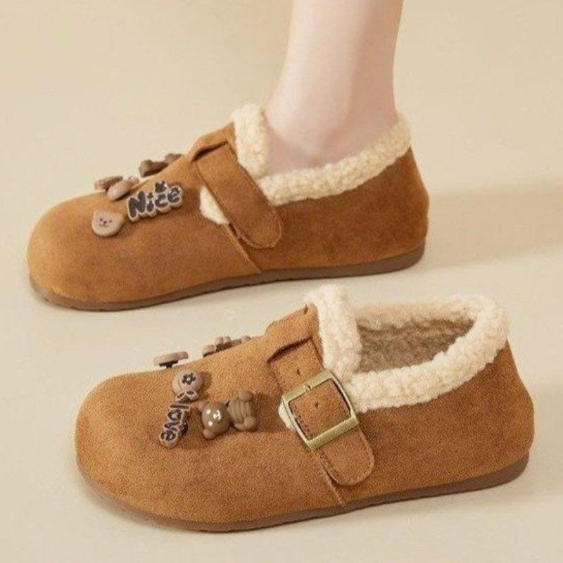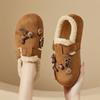 Damplyftande plyschskor för kvinnor med hel täckning, platt botten, tecknad spänne för en fot, bomullsskor