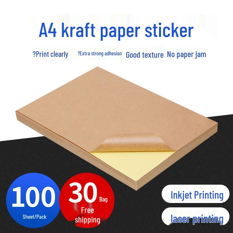 A4 Dark Kraft Self-Adhesive Label Paper with Strong Matte Backing Stickers