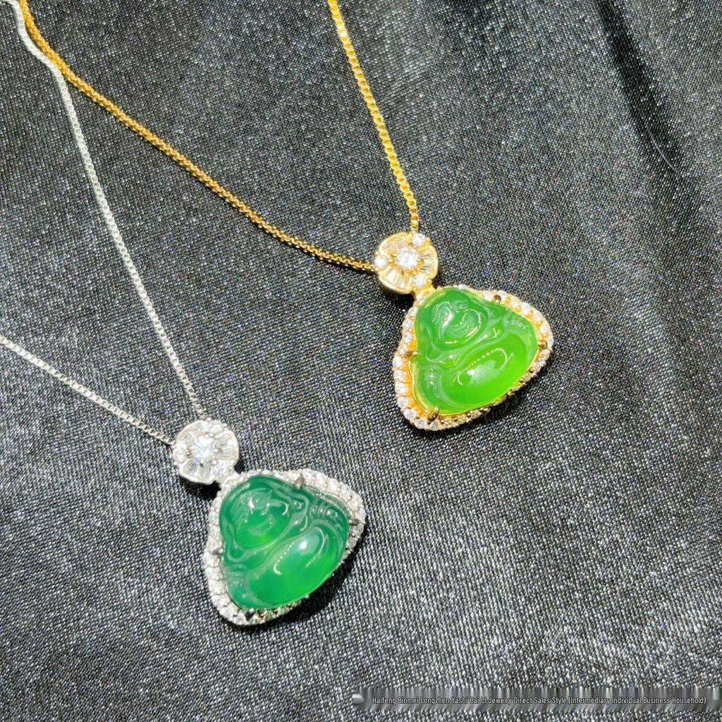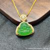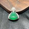 Grade A Chalcedony Agate Jadeite Smiling Buddha Pendant in S925 Silver, High Ice Green, Full Diamond with Mesh Design.