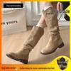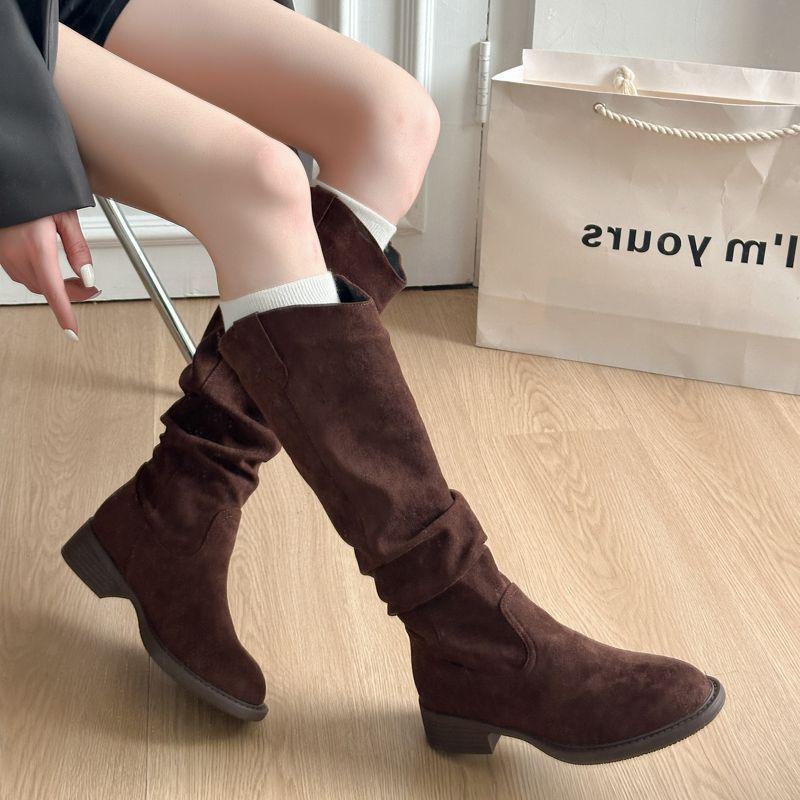 Damskor Mocka Vintage Rynkade Höga Stövelskaft - Wasteland-stil, Mångsidiga Staplade Långskaftade Stövlar för Vår och Höst 2025