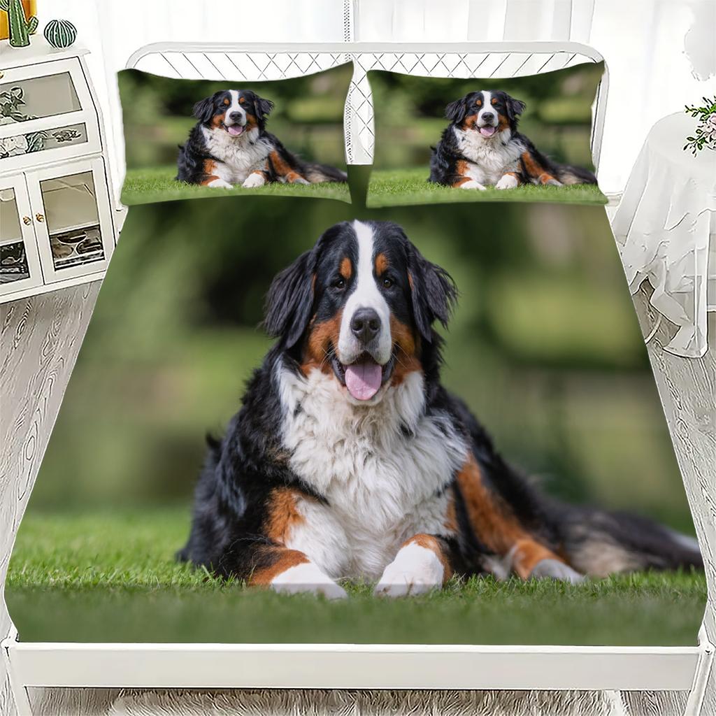 3D Hund och Katt Söt Tryck Dra-på-lakan Set Madrasskydd Mjukt Andningsbart Sängklädesset med Djupt Fack för Sovrum