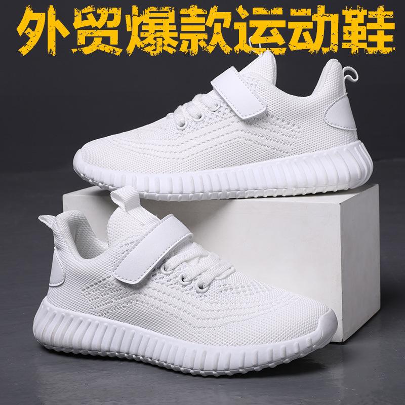 Non-slip woven mesh children's medium and large sports shoes foreign trade running shoes children's boys light flying sports breathable transportation