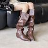 Boots Women's Tall Over Knee Boots 2025 New Autumn and Winter Women's Boots Thick Heel Boots Large Boots Pleated Stacking Boots
