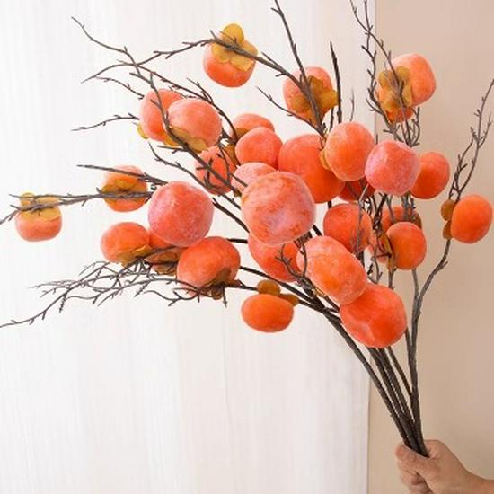 7-Head Persimmon Branch Ikebana Ornament: Artificial Ruyi Persimmon for Living Room or Dried Flower Display