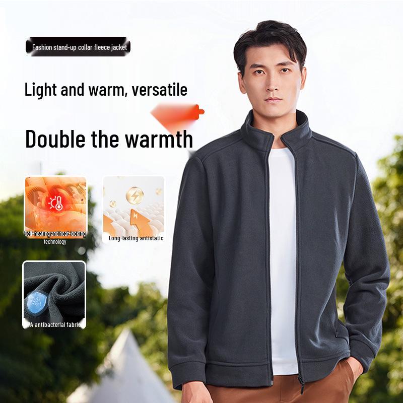 Håll dig stilsäker och varm med denna mångsidiga unisexjacka, perfekt för alla årstider.. Med en ståkrage och ett enfärgat mönster erbjuder den en elegant och modern look. Jackan är tillverkad av medeltjockt polyestermaterial, vilket säkerställer komfort och hållbarhet.. Dess långa ärmar ger optimal täckning, medan fleecefodret av 100 % polyesterfiber förstärker dess mysighet och värme.. Denna jacka är idealisk för vardagsbruk och kombinerar utan ansträngning praktisk användbarhet med mode.