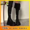 Fold velvet boots women's small knight tall boots 2025 autumn and winter new thick-soled ins two-wear knee boots