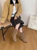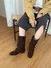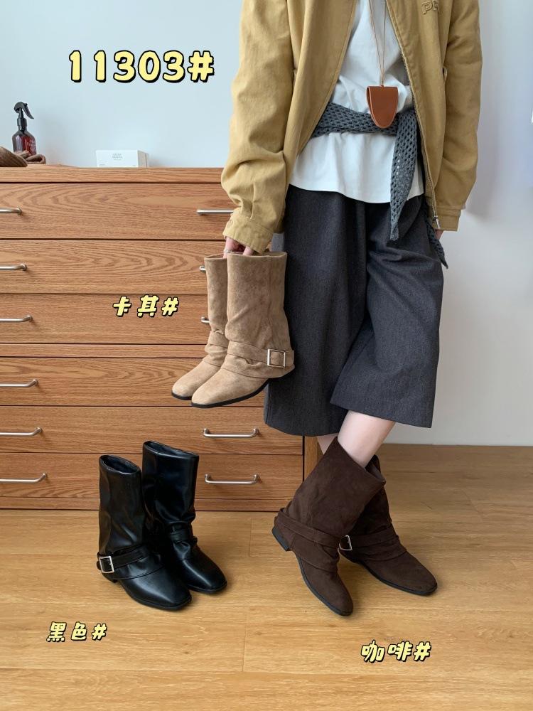 Retro fyrkantig tå tjock klack 2025 höst och vinter mid-tube stövlar dammode spänne fyrkantig tå damkängor tunna damstövlar