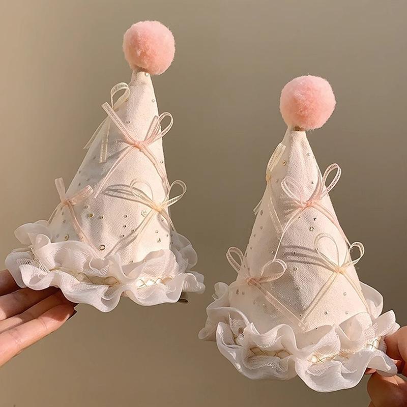 Söt rosett pompom födelsedagshatt hårspännen söt flickas huvudbonad fest håraccessoarer barn fotograferingsrekvisita
