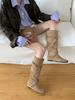 Inner heightening boots women's 25 new autumn retro versatile stacking boots belt buckle slim tall knight boots
