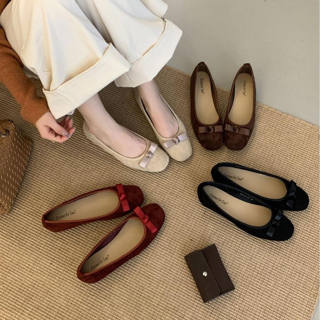 2025 new round head suede bow light mouth foot cover versatile thin commuter soft sole foot cover women's single shoes