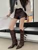 2025 nya europeiska och amerikanska stil bältesspänne tunna tjocka klack spetsiga riddarstövlar