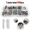 200 st. sexkantsnyloninsats självlåsande mutter nylock-låsmutter sortimentssats M2 M2.5 M3 M4 M5 M6 M8 304 A2-70 rostfritt stål