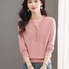 Stickad tröja med spetskant för kvinnor, snygg V-ringning, moderiktigt temperament, enfärgad basplaggströja, vårhöst, ny stil