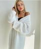 Damstickad jacka i fluffigt vitt imiterat minkgarn för höst/vinter