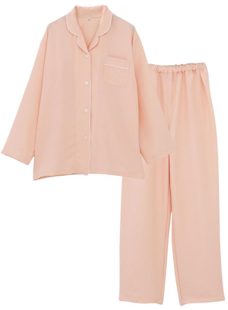 [Material] These shirt pajamas are made from a smooth, natural-looking fabric with a natural, wrinkle-treated finish. The tightly woven fabric is thin yet durable. It has an elegant sheen and a luxurious feel. The washed fabric gives a natural, soft impression. Wrinkles are less noticeable even after washing, and the textured fabric reduces sticking to the skin and improves breathability.