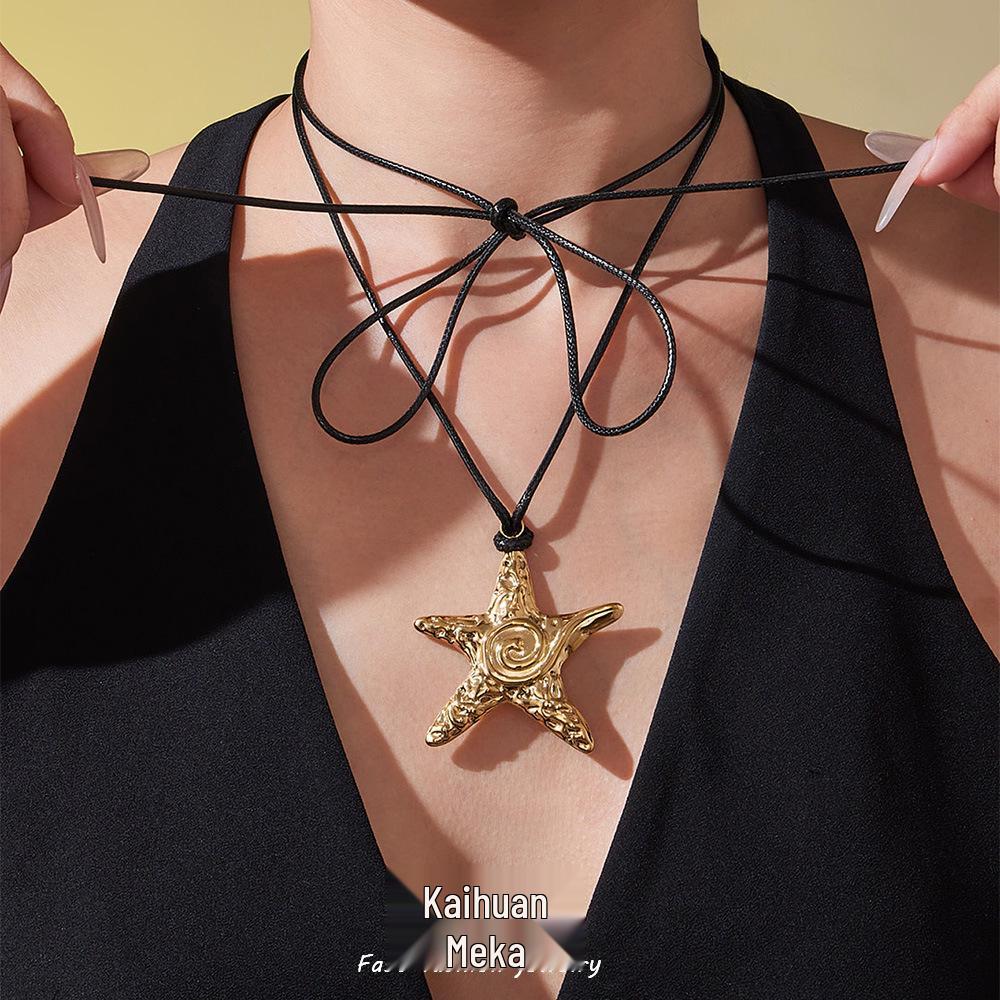 Oumaijia 18k Guldpläterad Sjöborre Hänge Halsband med Svart Läderhalsband - Europeisk och Amerikansk INS Stil.
