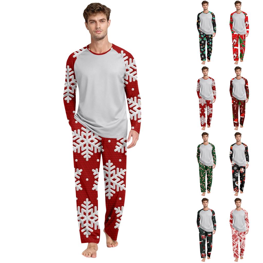 Men's Printed Round Neck Top Casual Comfortable Long-Sleeved Pants Pajama Set