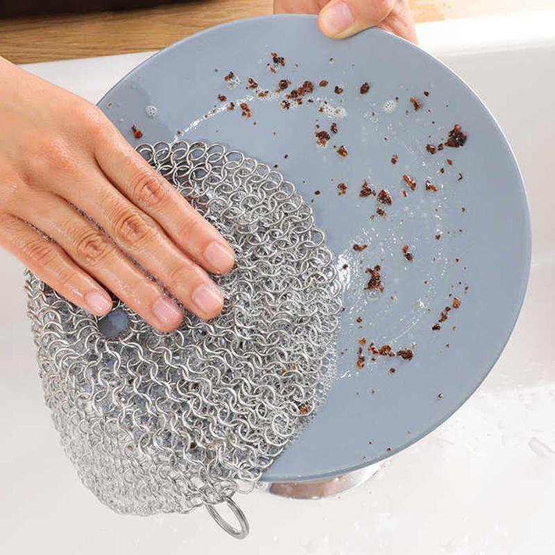 316 Stainless Steel Kitchen Cleaning Ring Stainless Steel Cleaner Dishwashing Brush Reusable Washing Net Cleaning Tool For Home