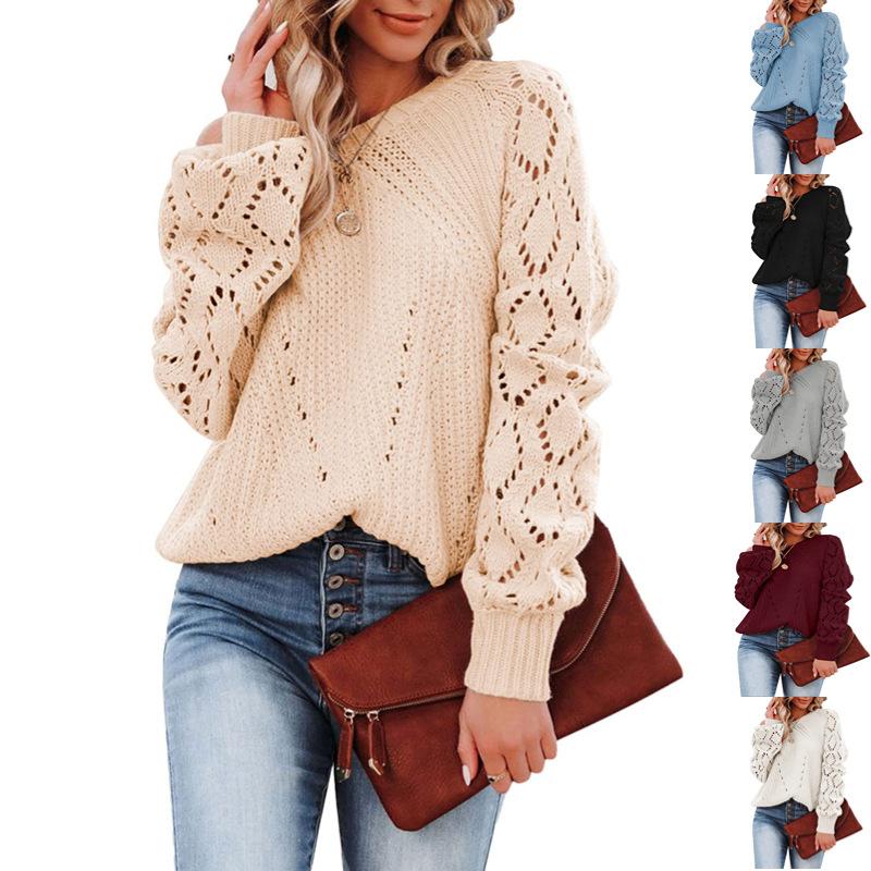 Autumn Winter Diamond Grid Sweater Women's Round Neck Hollow Out Loose Pullover Comfortable Versatile Knitted Undercoat Top