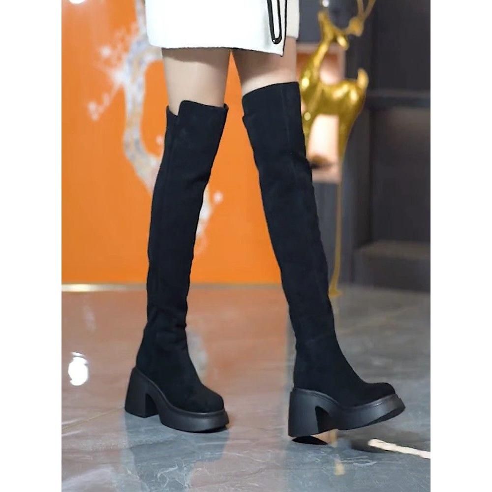 Damskor Chunky-klack Över knäet - Rund tå, Elastiska, Smickrande, Tjock sula, Höst/Vinter 2025 Kollektion.