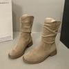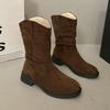 Vintage Western Cowboy Boots Women's 2025 Autumn New Maillard Medium Tube Stacking Boots New Travel Martin Short Boots