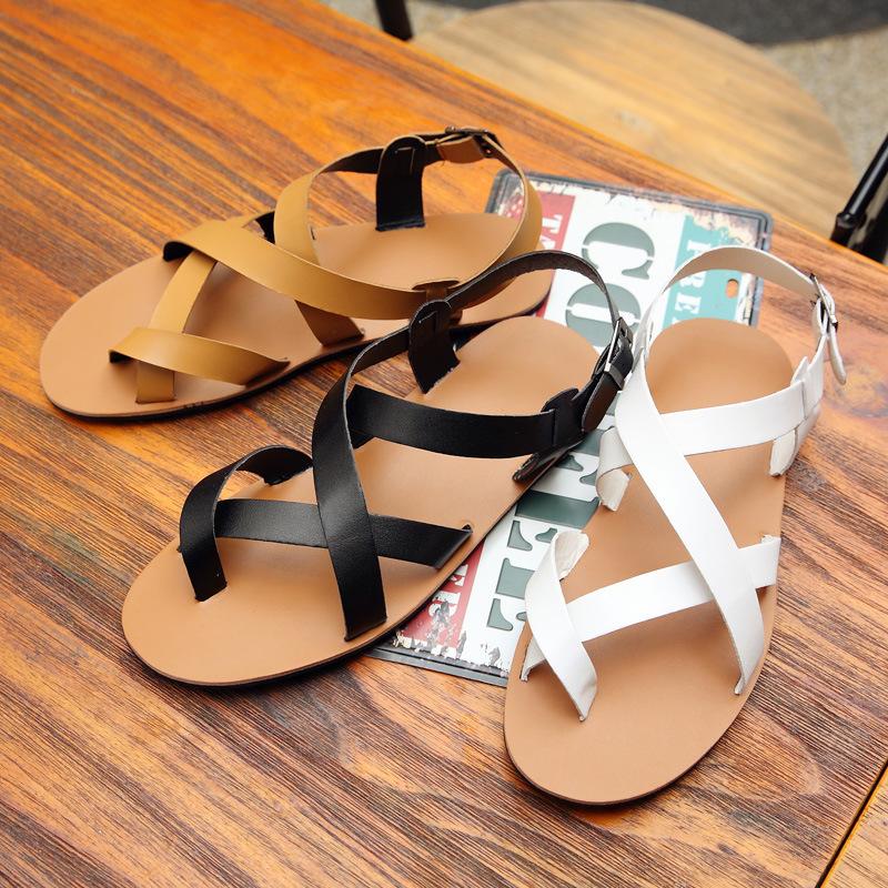 2025 sommar herrtofflor trend koreansk version av flip-flops halkfria lädersandaler romerska sandaler herrstrandskor