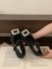2025 Fransk fyrkantig tå strass fluffiga skor för kvinnor att bära utomhus höst och vinter nya mångsidiga milda Mary Jane kvällsskor