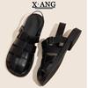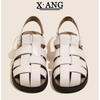 Cowhide version soft-soled bag head half slippers women's summer wear 2025 new woven hollow pig cage shoes Roman sandals women