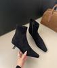 High-heeled pointed-toed temperament suede short boots women's shoes 2025 new autumn and winter velvet thin-heeled Korean thin boots