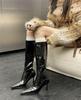 Patent leather solid color minimalist style knight boots women's 2025 autumn and winter new fashion design thin high heel fashion boots