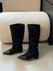 Liten man inre höjdökning men knähöga stövlar staplade stövlar damstövlar tidig höst retro mocka khaki stövlar westernstövlar