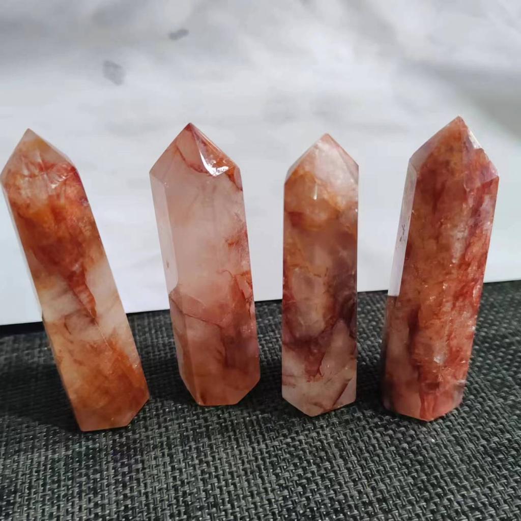 Natural Crystal Red Gum Flower Hexagonal Single Pointed Pillar Polishing Hexagonal Columns with Original Decorative Stones