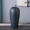 Jingdezhen Keramisk Vas Set - Ädelblå Bubbelglasyr med Silkesblommor (3-delad)