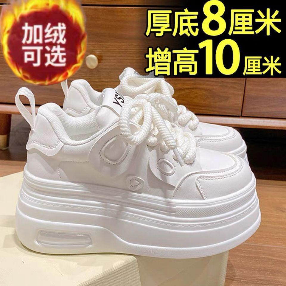 Little white shoes women's 2025 autumn and winter velvet thick-soled muffin shoes European station casual small man inner height increase dad shoes