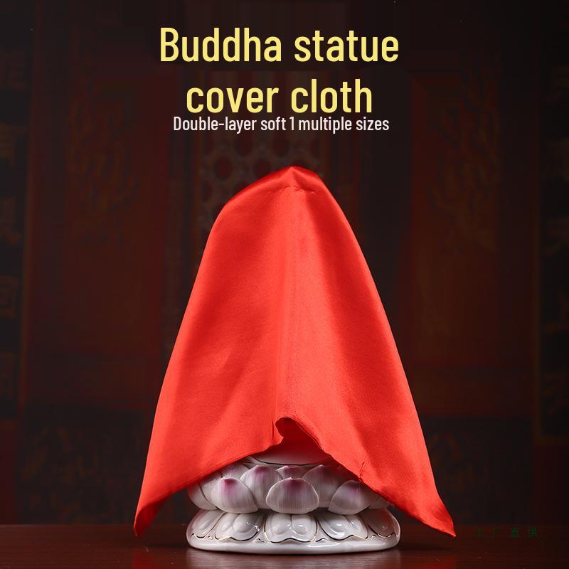 Buddha and Bodhisattva Statue with Red Silk Cloth Covering for Head and Body