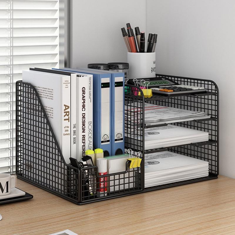 Multi-Layer Desktop Bookshelf Organizer: Large Capacity File and Paper Storage Rack