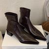 Franska spetsiga ankelstövletter dam tjock klack 2025 nya höst och vinter mjukt läder dragkedja bak hög klack smala stövlar