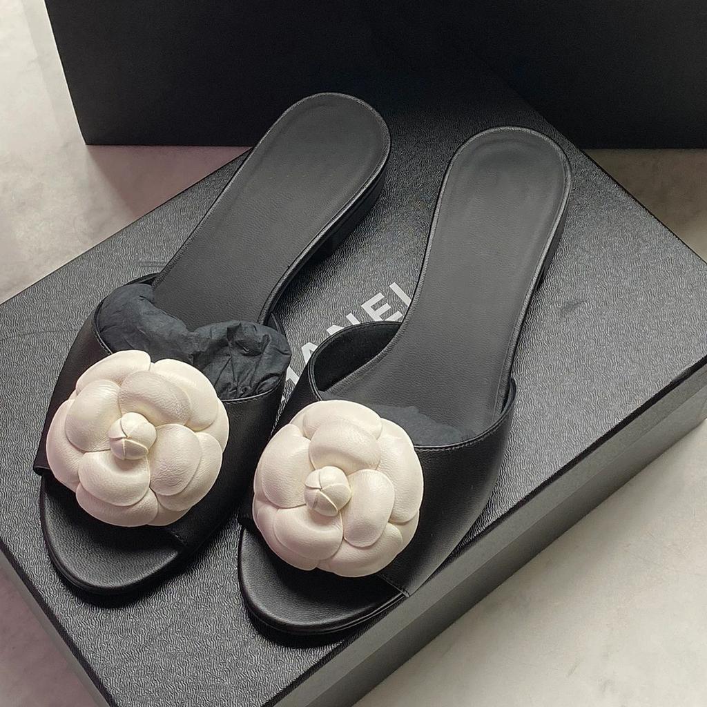Läder små doftande vind kamelia tofflor kvinnor bär sommar nya fevind platt botten strand halv bricka sandaler