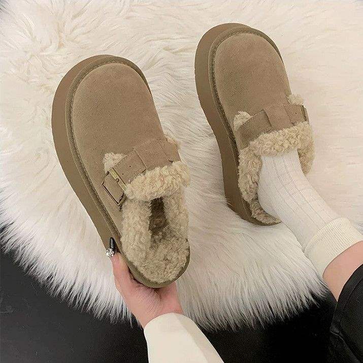 Tjock botten höjande en pedal väskhuvud Birkenstock lurviga halvtofflor dam höst och vinter ytterkläder sammet 2025 nya bomullstofflor