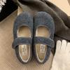 Grå kardborreband tofflor för damvinterkläder nya sammetsskor varma bomullsskor platta Mary Jane Doudou-skor