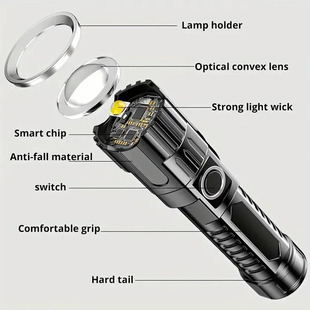 Super Bright LED Flashlight Type-C Rechargeable Long Range Tactical Torch Outdoor Waterproof Emergency Camping Fishing Lantern