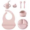 Color Kids 6PCS Silicone Feeding Set Divided Plates Sippy Cup Training Eating Cutlery Strong Suction Bowl BPA Free Tableware set
