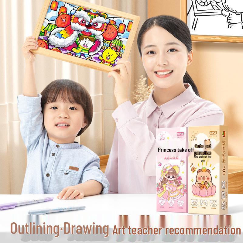 Double-Headed Quick-Dry Black Art Marker for Children's Outlining